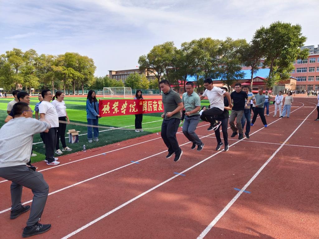 参赛队员按照专业和业务方向分别组成了采矿队、地质队、矿加队和机关队等4支队伍,比赛设置了“凝心聚力”拔河比赛、“踔厉奋发”跳绳比赛、“稳操胜券”单车慢行比赛和“团结就是力量”接力比赛等4项竞赛环节。在竞赛中,参赛教师代表各自组队上演了“强强对话”,欢笑声、呐喊声、助威声充实了整个赛场。比赛前,队员们摩拳擦掌、跃跃欲试;比赛中,队员们同舟共济、不遗余力;比赛后,队员们击掌庆祝、相互鼓励成为了本次趣味团体赛一幕幕精彩的瞬间。拔河比赛中的永不言弃,大绳比赛中的整齐划一,单车慢性中的脚不沾地和接力比赛中的同心协力,都成为了本次竞赛最难忘的记忆。各单项赛后,书记乔和、院长王东和副书记聂仁东分别为参赛队颁发了奖状,并与各位师生合影留念。