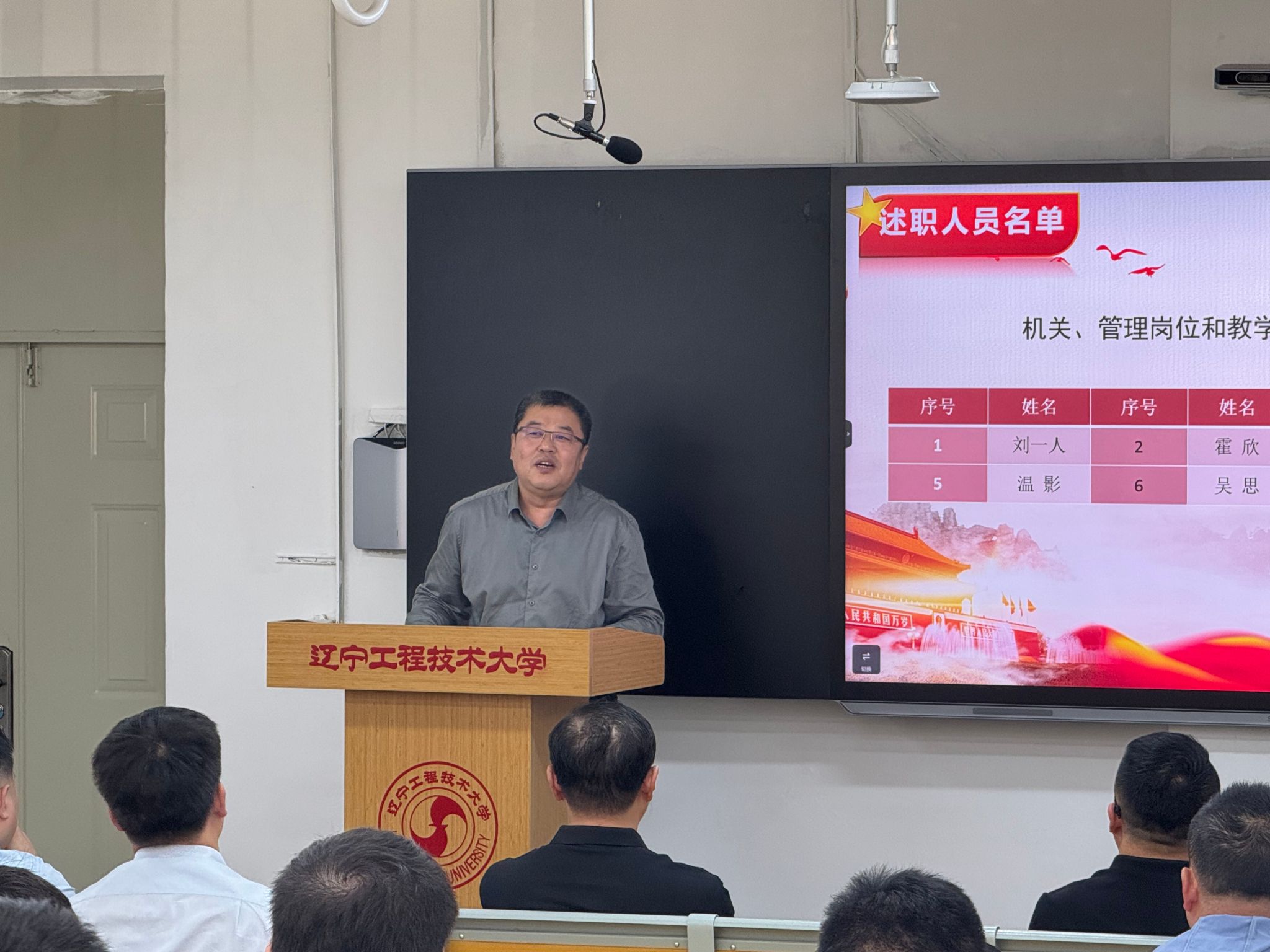 领导班子成员及全体教职工参加会议。
