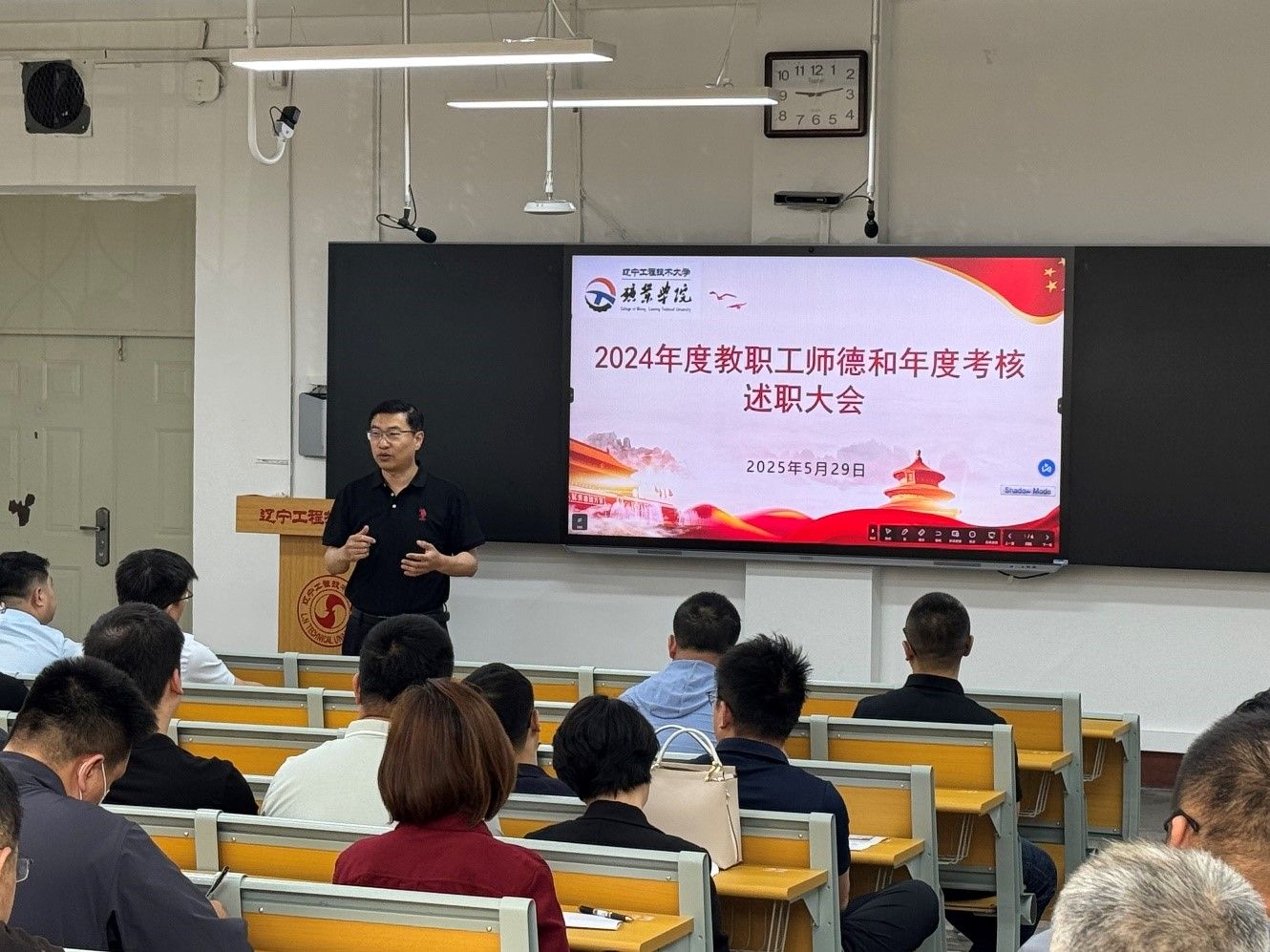召开2024年度教职工师德和年度考核述职大会。会议由党委书记于海军主持,电玩城