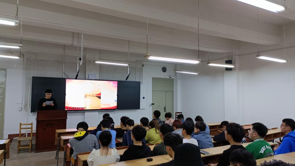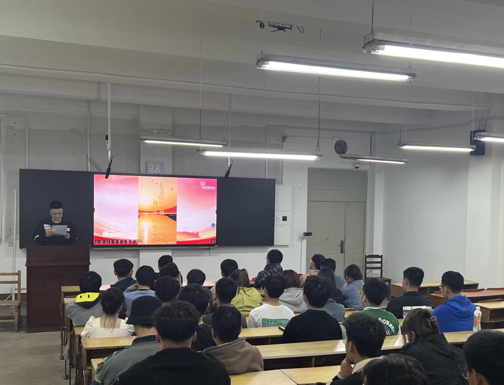 团委副书记陶洪霖主持。主题团日活动在嘹亮的团歌声中拉开序幕,同学们精神饱满,朝气蓬勃。在主题宣讲环节,院团委副书记陶洪霖、学生会执行主席赵振兴带领大家学习新华社文章《总书记心中的新时代好青年》,观看《青年朋友的知心人》视频,激励全体同学立志做有理想、敢担当、能吃苦、肯奋斗的新时代好青年。