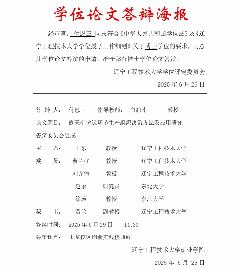 2025年博士学位论文答辩公告(答辩人:付恩三)