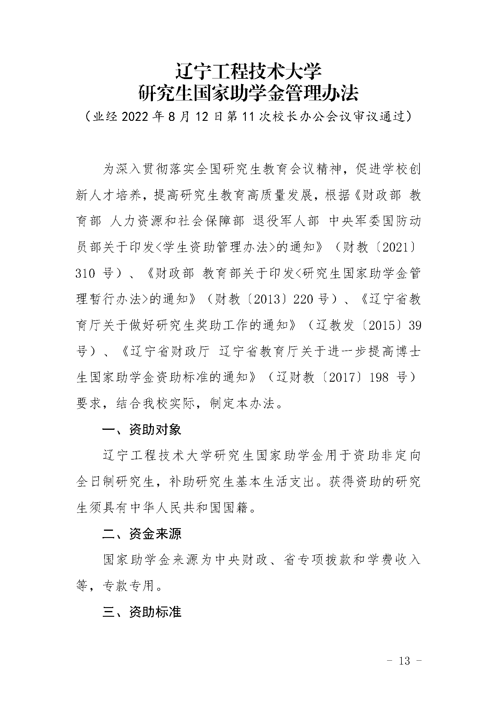 辽宁工程技术大学研究生国家助学金管理办法