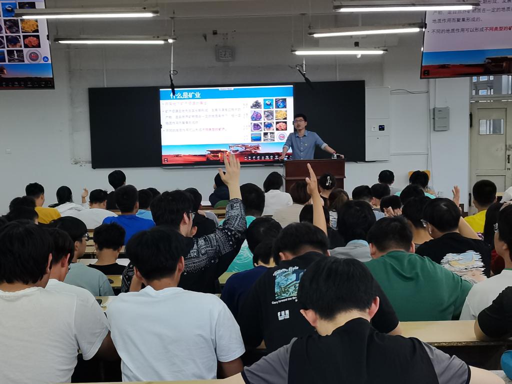 首先,孙乾予老师从“什么是矿业”讲起,从矿产资源的形成引出了矿产的种类,为同学们介绍了矿业工程学科及其与相邻学科的密切联系。随后,孙老师从工业生产角度介绍矿业在国民经济的地位,以汽车产品为例,讲解汽车-零部件-各种材料加工制备-金属合金或非金属材料-金属原料-金属矿粉-矿石-矿产资源开发的产业链,使同学们通过产业链条认识矿业地位。最后,孙老师讲解我国矿产资源形势、世界原材料供给形势以及未来矿业发展向内的城市矿产、向外的深海、深地、太空的发展形势,使学生进一步了解矿业在国民经济中的贡献。