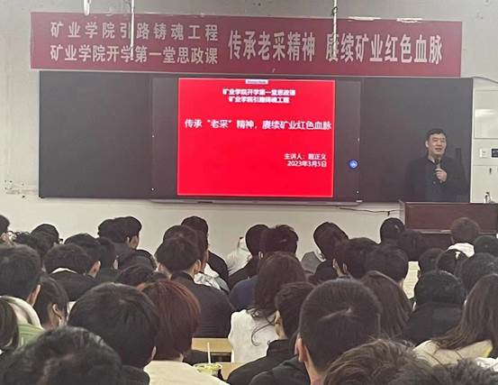 2023年3月5日,线上电玩城官网 举办“引路铸魂工程”启动仪式暨开学第一堂思政课,邀请题正义教授为线上电玩城官网 2022级全体学生讲授“传承老采精神,赓续矿业红色血脉”主题思政课,线上电玩城官网 党委书记乔和、党委副书记聂仁东及全体辅导员参加本次活动。