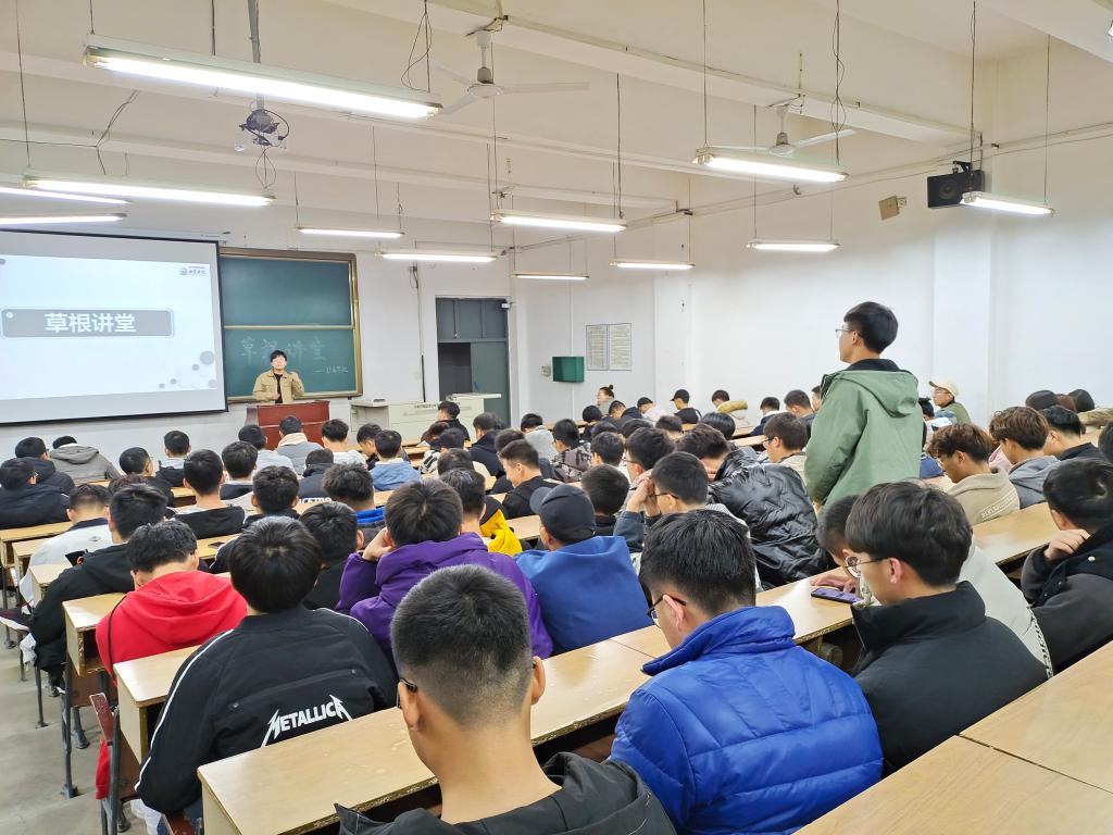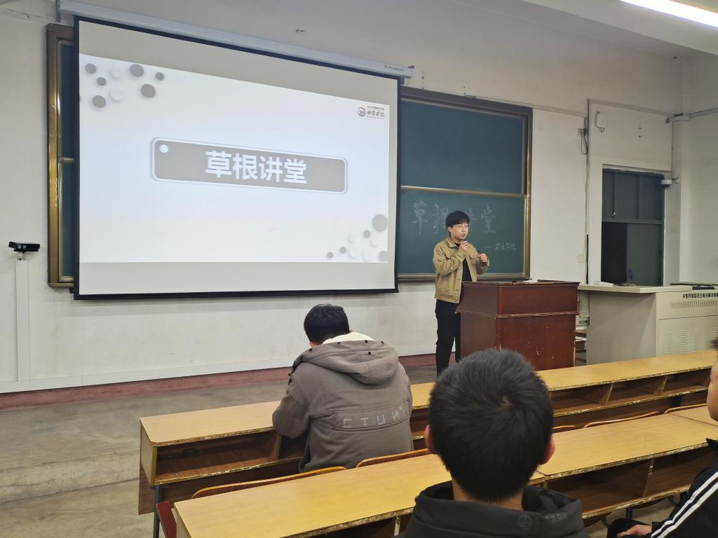 精品活动之一——“草根讲堂”活动的创办理念及活动意义,希望能同学们能从主讲人由平凡“草根”逆袭为优秀榜样的经历中汲取力量,奋进拼搏。