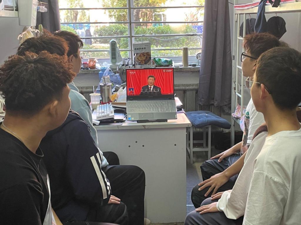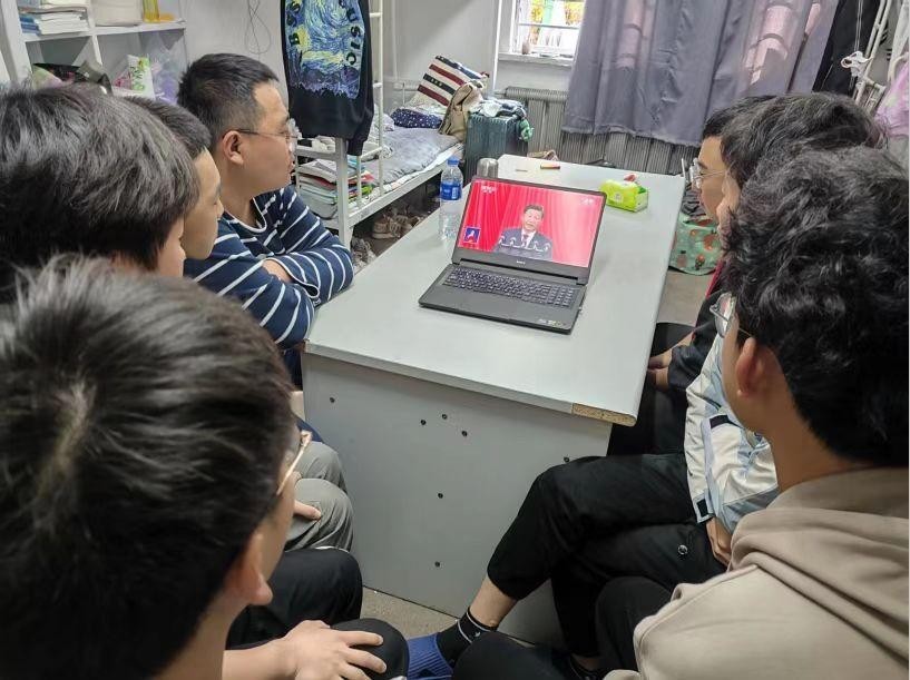 各团支部以寝室为单位收看大会直播,认真学习大会报告精神,通过线上视频会议讨论学习、线下书写感悟心得等方式加深理解。同学们纷纷表示聆听党的二十大报告后深受鼓舞,新时代中国青年在中国共产党领导下胸中有信仰、脚下有方向、心里有情怀,定会以奋力奔跑的姿态庆祝党的二十大胜利召开,在新时代新征程展现新气象新作为。